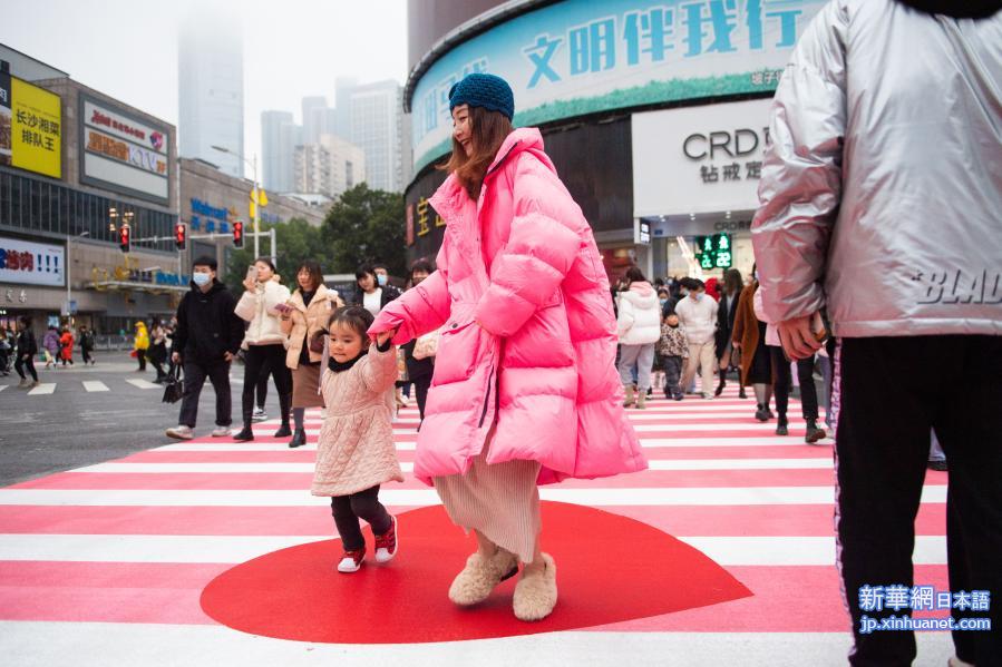 画像は新華網提供ピンクの横断歩道